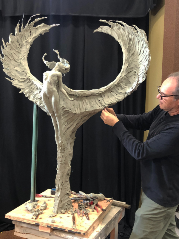 The radiant sculpture of the spirit of JOY exudes a captivating aura of bliss and euphoria, as if overcome with unbridled delight. Her very essence symbolizes the triumphant banishment of all negativity, allowing her heart to bask in the warmth of boundless happiness.